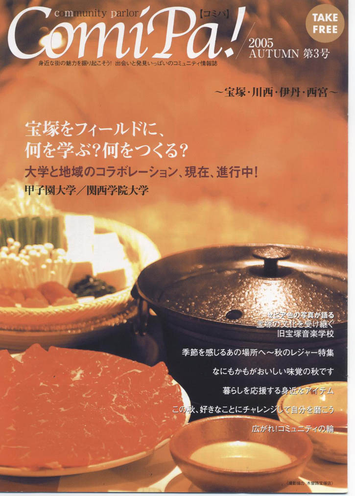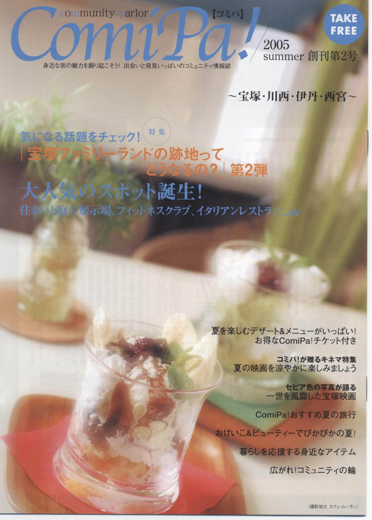 実績一覧 ESAKA STYLE BOOK 2005年12月27日 江坂スタイルブック サイズ120×120 12ページ 「北摂・江坂ガーデンスタイル」 ファッション・グルメの満足スポット をご紹介しています。 コミパ4号 2005年12月5日 コミパ4号『年末年始特集』 クリスマスギフトにぴったりなかわいいお菓子や雑貨 忘年会・新年会にぴったりのお店 初詣にぜひ訪れたい「清荒神」 など盛りだくさんの内容でお届けします。 はぴら vol.8 江坂 2005年12月3日 A4版 8ページ 『知らなかった「江坂」に出会おう!』 江坂の便利でおしゃれな街の様子、 市の子育て支援や学校に関する情報、 おいしいレストランに雑貨屋さんなど、 地元の人が教えてくれる「リアル江坂案内」です。 はぴらとっておきクーポン券付 野村不動産 北摂・江坂グリーンプロジェクト おいしいまち 宝塚 2005年11月1日 「おいしいまち宝塚へようこそ」 和菓子、洋菓子、パン・・・。 宝塚にはおいしいものがいっぱい。 このガイドブックを片手に、貴方も心ゆくまで このまちを味わってみてください。 フォレスト垂水 2005年10月1日 『フォレスト垂水』 A4版 6ページ 介護専用 有料老人ホーム案内パンフレット 施設の様子、設備を ・安全の森 ・にぎわいの森 ・癒しの森 などの側面からご紹介 フォレスト垂水のホームページです。 http://www.fineforest.co.jp/ コミパ3号 2005年9月1日 コミパ!3号 『宝塚フィールドに何を学ぶ?何をつくる?』 大学と地域のコラボレーション、3つの大学が地元・宝塚の地域活動に参加し、街の活性化に貢献する様子をお知らせします。 フォレスト垂水 2 2005年9月1日 『フォレスト垂水』 A4版 両面チラシ 介護専用 有料老人ホーム オープン前チラシ 施設の案内を中心に、特徴をわかりやすく掲載。 フォレスト垂水のホームページです。 http://www.fineforest.co.jp/ はぴら vol.7 吹田・片山公園 2005年8月1日 A5版 8ページ 吹田・片山公園かいわい散策ルポ 『優れた交通利便性と歴史、清らかな水が育んだ豊かな暮らし』 吹田・片山公園周辺で見つけたおすすめショップ&スポット 教えて吹田・片山公園周辺Q&A うれしいショップクーポン付き 新発表 コスモ吹田片山公園 コスモスライフ マンション管理サービスツール 2005年7月1日 A4版 三ツ折6ページ 「快適な暮らしのために」 座談会 知れば知るほど、便利でお得なサービスに出会えます。 サービス内容)ホームセキュリティ・インターネット・リフォーム ハウスクリーニング等々 安心の指定協力会社と各地域協力会社連絡先一覧 こんなことどうしたら?連絡ネットワーク コミパ!2号 2005年6月1日 コミパ!2号 宝塚ファミリーランドの跡地ってどうなるの?第二弾 大人気のスポット誕生! Comipaおすすめ夏の旅行 1 2 カテゴリー コミパ住まいの情報誌イベントその他 過去の実績 2025年 2024年 2023年 2022年 2021年 2020年 2019年 2018年 2017年 2016年 2015年 2014年 2013年 2012年 2011年 2010年 2009年 2008年 2007年 2006年 2005年